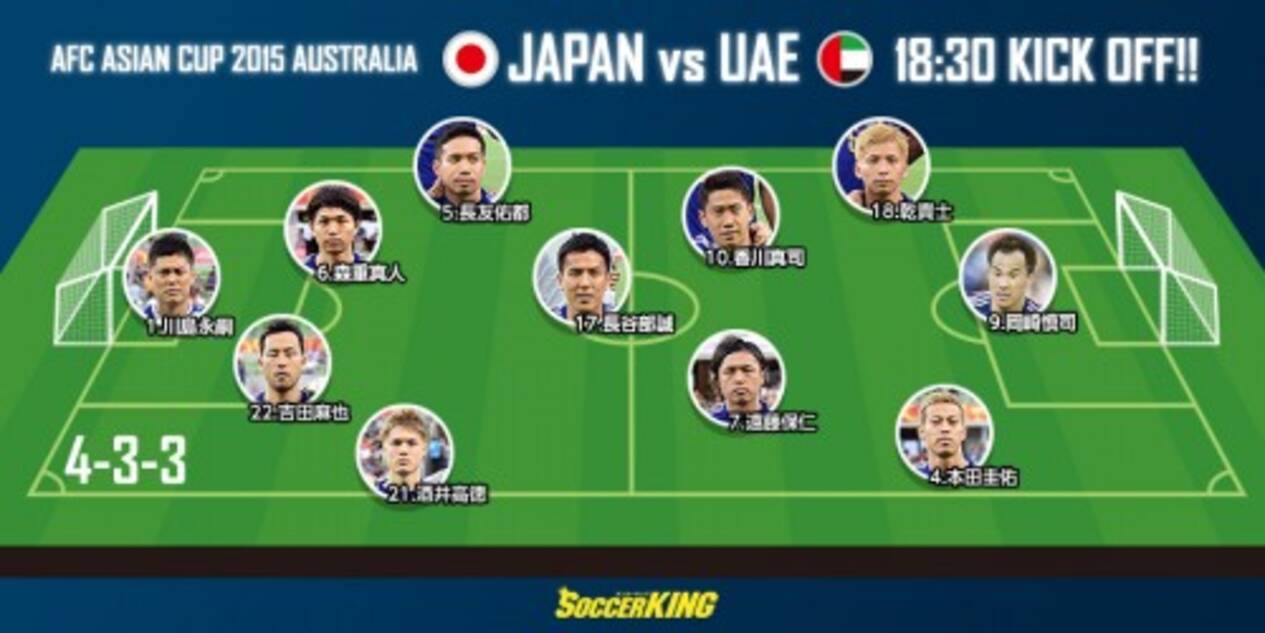 アジアカップ オーストラリア大会 Uae戦 15年1月23日 サッカー日本代表フォーメーション